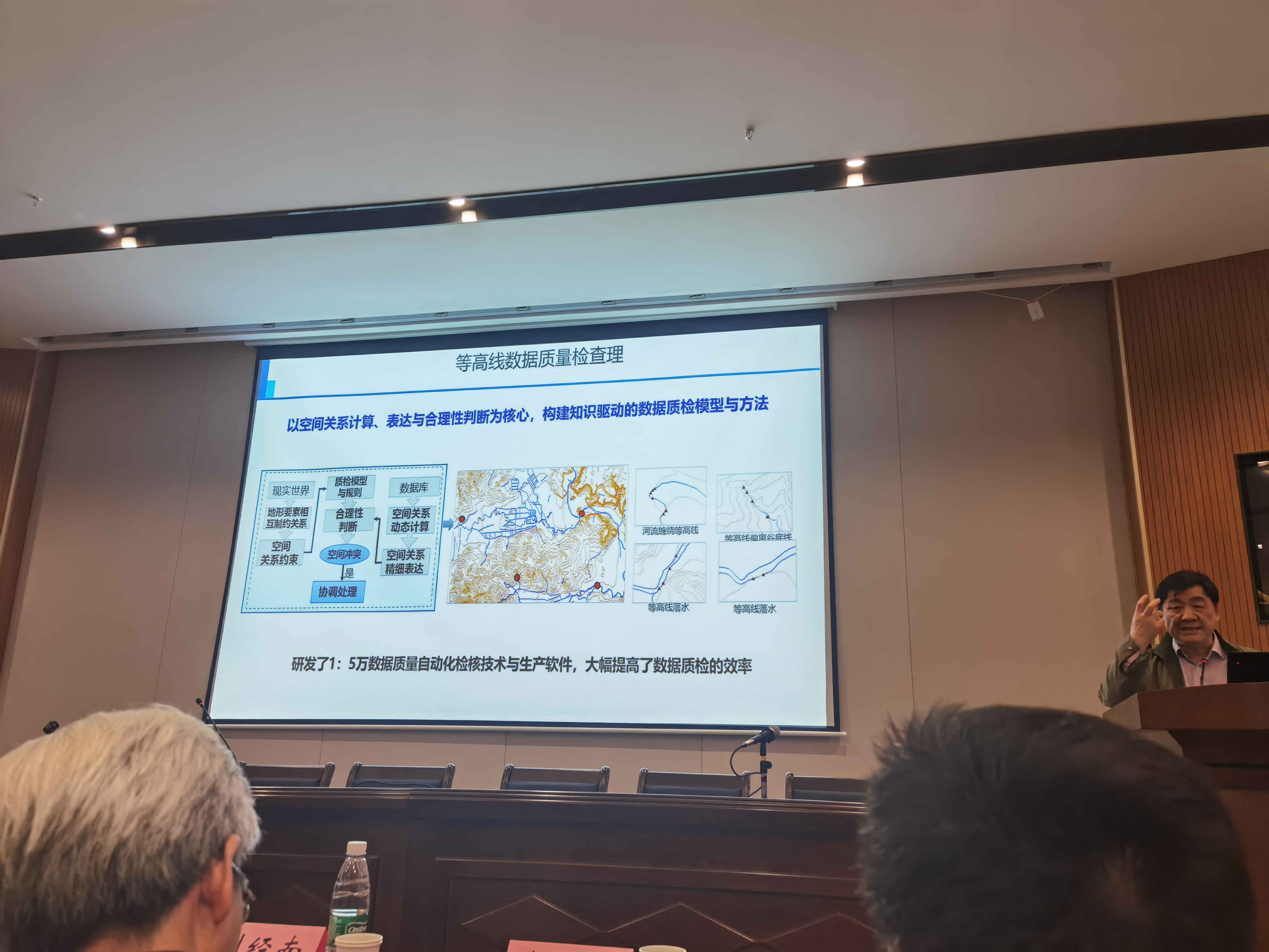 陈军教授在报告中指出,测绘整体参与组建新的自然资源部门,对测绘提出了新的更高的技术需求,未来测绘往何处去,技术如何转型升级,已经成为业内关心的重要话题。未来测绘需要针对每一类测绘生产与服务,研究其信心处理机制,梳理所使用的先验知识,构建混合型智能计算的模式,研究其赋能测绘生产的机制和路径。由于时间不够充裕,现场没有安排互动时间,在座师生表示较为遗憾。
