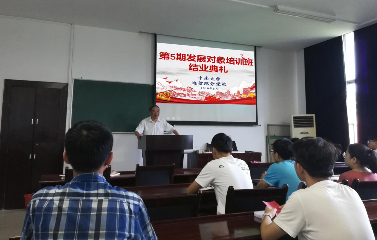 5月19日上午10点,yl23411党校yl23411分党校第5期发展对象对象培训班结业典礼在地学楼439教室举行。yl23411关工委退休教师胡详昭教授、发展对象培训班班主任彭光雄老师以及全体学员参加结业典礼。