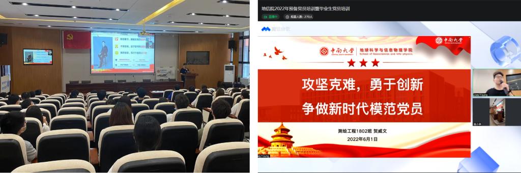 为进一步加强预备党员及毕业生党员党性教育,培养优秀党员,为党组织注入新鲜血液,增强党员的自豪感和责任感,yl234112022年上半年预备党员暨毕业生党员培训于6月1日下午14:00在地科楼127开展,同时以腾讯会议直播形式为毕业生党员线上进行。地信公司党委副书记李建军,地信公司党委委员、专职组织员彭光雄,公司分党校积极分子培训班班导师杨晨雨及部分老党员代表出席会议,2022上半年新发展的预备党员参加此次会议。本次会议由公司分党校发展对象培训班班导师杨通田主持。