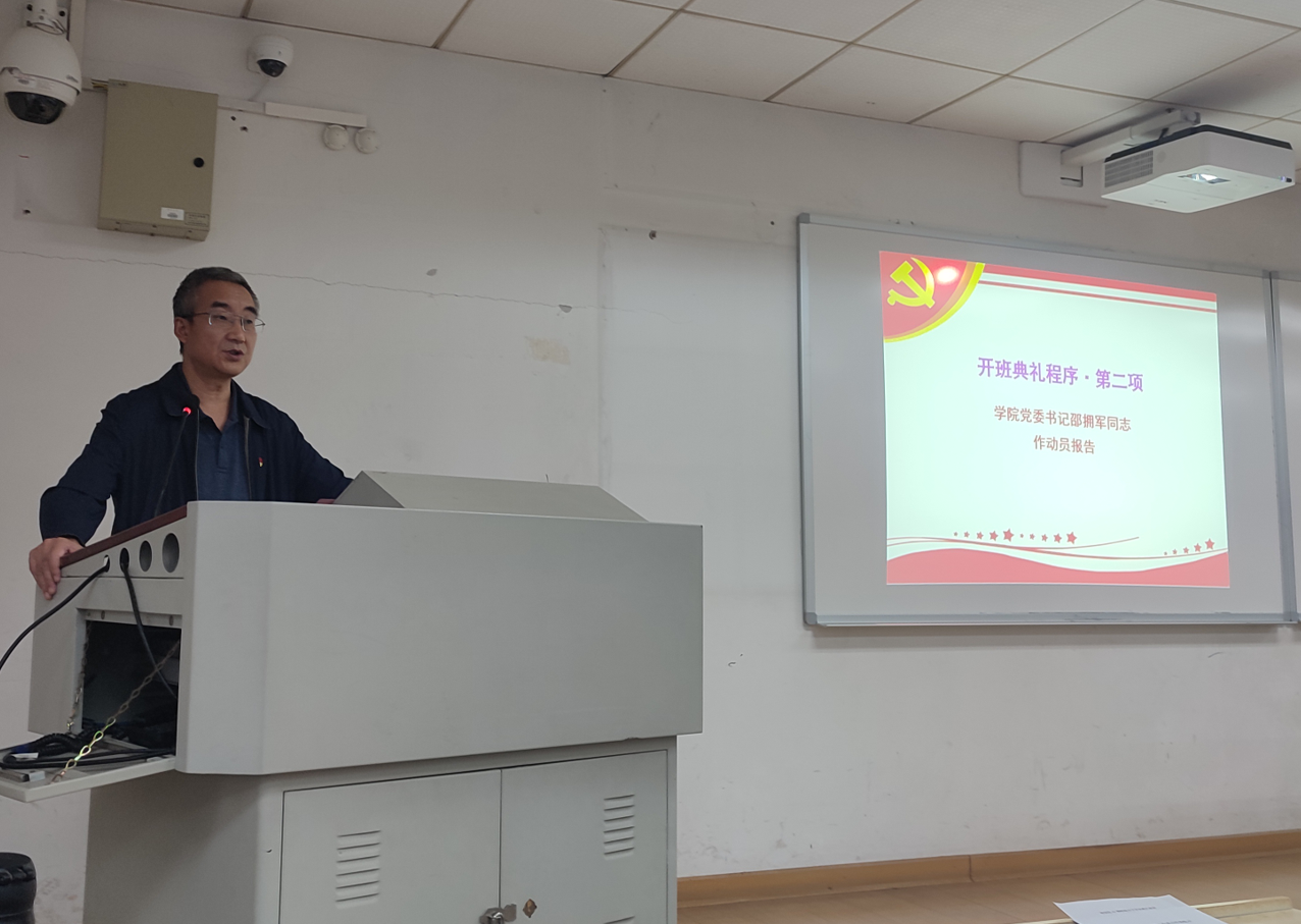 在激昂的国歌声中,典礼拉开序幕。紧接着,公司党委书记邵拥军老师上台给同学们作动员报告。在讲话中,邵拥军对参与积极分子培训班的同学表示了热烈的欢迎与祝贺。同时,他对培训班的学员们提出了几点期望和要求:希望参加培训的学员能在培训过程中认真学习,遵守纪律,严格要求自己;深刻感悟领会党的理论知识、端正入党动机,加强理论思考,提高政治素养,深化党性修养;养成良好的生活习惯与作息,拒绝惫懒;注重理论与实践结合,做实事,多参与志愿活动,以实际行动积极主动地向党组织靠拢。在最后,邵拥军预祝本次培训班取得圆满成功。