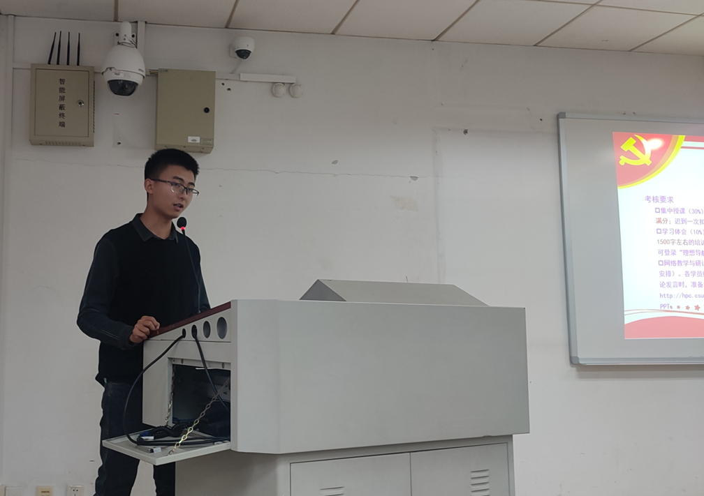 随后培训班班导师杨晨雨对培训班情况作了简要介绍。他首先说明了培训班的各个小组划分以及对应的班长和组长,同时就请假程序进行了说明,告诫同学们应本着“非特殊情况不得请假”的态度参加培训。之后,他又对考核要求、时间节点、学习要求等方面进行了详细的说明,并对“青春向党”“七个一”手册做了重点说明,强调参训学员应当积极主动完成手册。