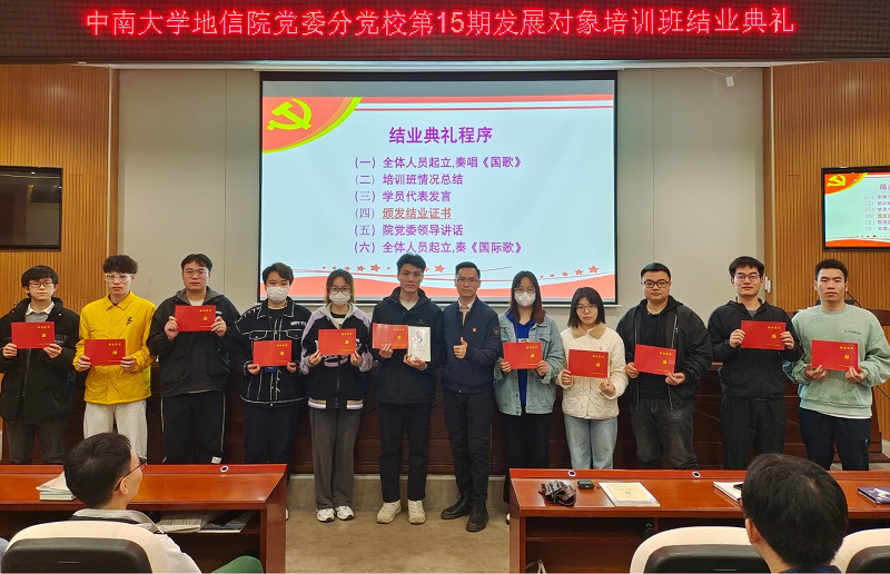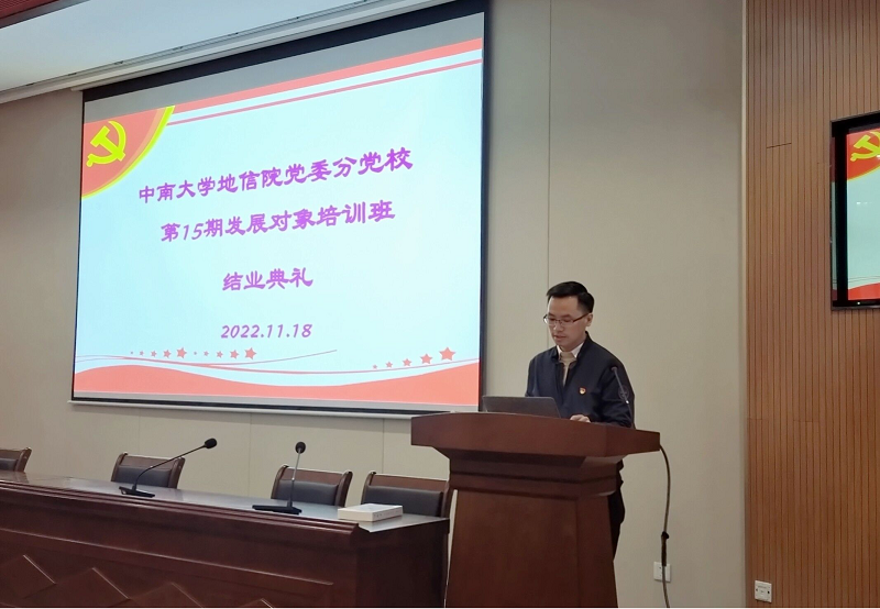 2022年11月18日,地信公司党委分党校第15期党员发展对象培训班结业典礼在地科楼127顺利举行。本次结业典礼由培训班班导师杨通田老师主持,培训班全体学员参加。