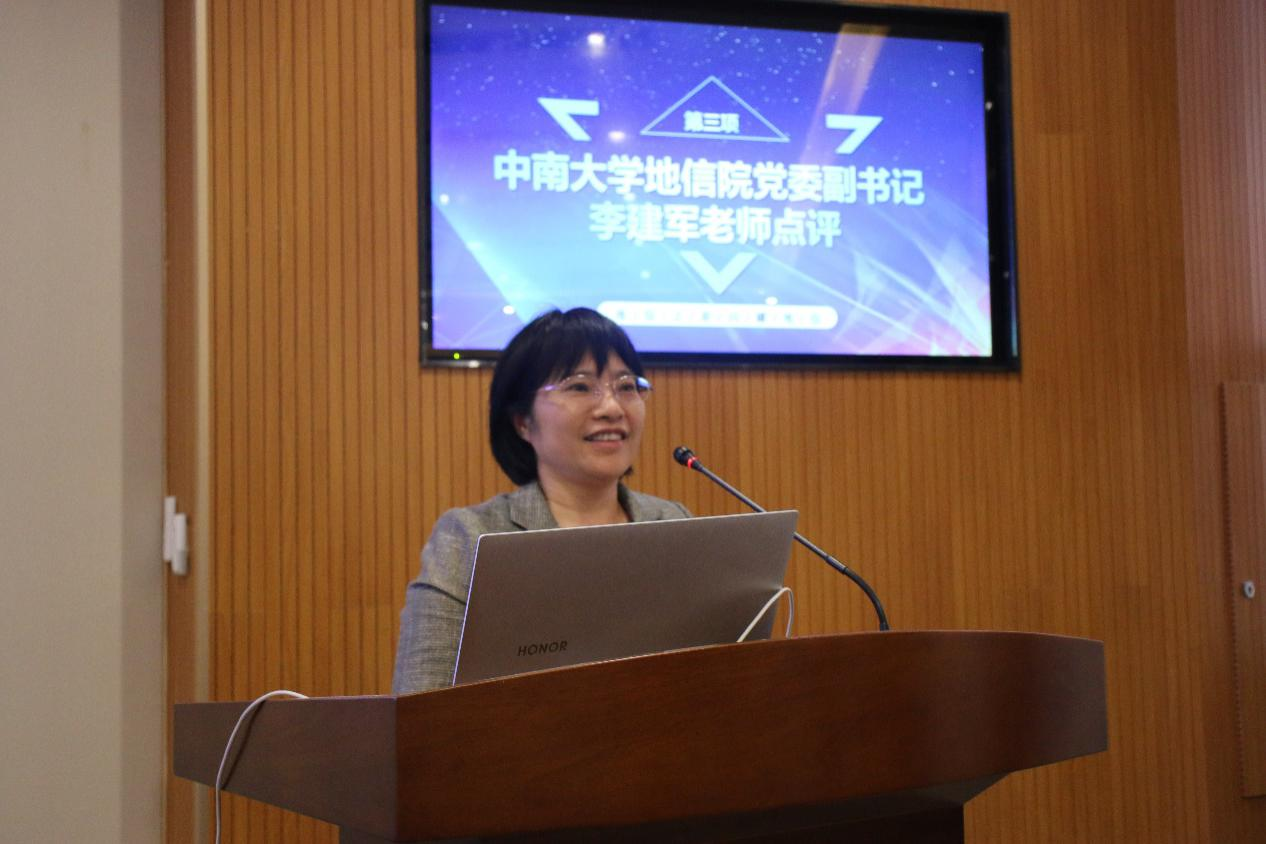 随后,23位集体和个人依次按抽签顺序进行答辩展示。现场精彩纷呈,选手们的答辩展示各具特色,尽展地信学子风采。所有选手答辩完毕后,地信公司党委副书记李建军老师就整场选手表现进行点评。李建军老师对此次答辩活动表示了充分的肯定。她指出,“地信星”评选活动的开展,目的在于树立典型,参赛的员工确确实实都是每个方面的典型代表,每位选手都有着勇于展示自己优秀面的劲头,都充分展示了公司良好的院风。同时,她也给选手们提出了很好的建议,希望他们能够越来越优秀,成为更加闪亮的那颗星。最后,她对参加比赛的各位员工及与会的老师表达了深深的感谢!