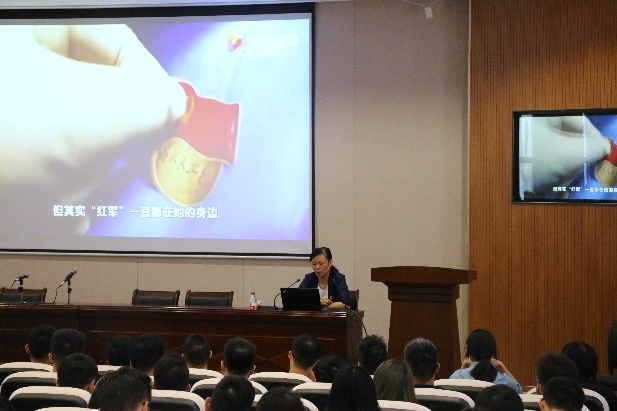 在党课正式开始前,一曲yl23411原创歌曲《红色的赞歌》将同学们的思绪聚集在课堂上。MV结束后,地信公司党委副书记李建军讲话,李书记提到,党史学习教育恰逢建党一百周年的重大时刻,学习党史,是为全面建设社会主义现代化国家汇聚强大的红色力量。同时她对朱董事长的到来表示热烈的欢迎。而后,党课正式开始。