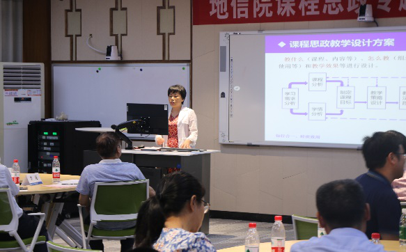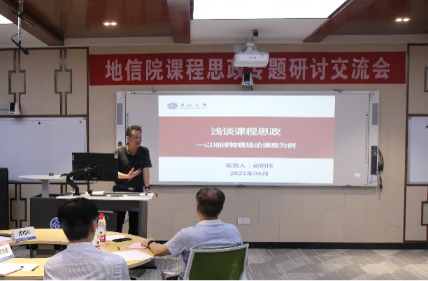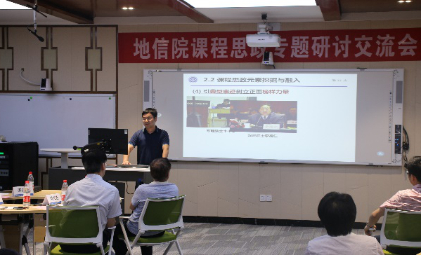 接下来,各系系主任、教学主任上台做专题发言,介绍各系课程思政工作开展的情况,应用地球物理系的崔益安、测绘与遥感科学系的张云生、地质工程系的孙平贺、地理信息系的陈杰以及地质资源系的李群五位老师依次上台发言。从理论课、实验课、实习实践以及课外与员工的交流等不同方面分享了开展课程思政工作的先进经验。