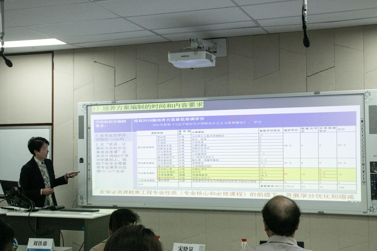 接下来资源勘查工程、地球物理学、地质工程、测绘工程以及遥感科学与技术、地理信息科学专业的教学主任和教师代表就2023版培养方案的修订工作进展情况进行了汇报。