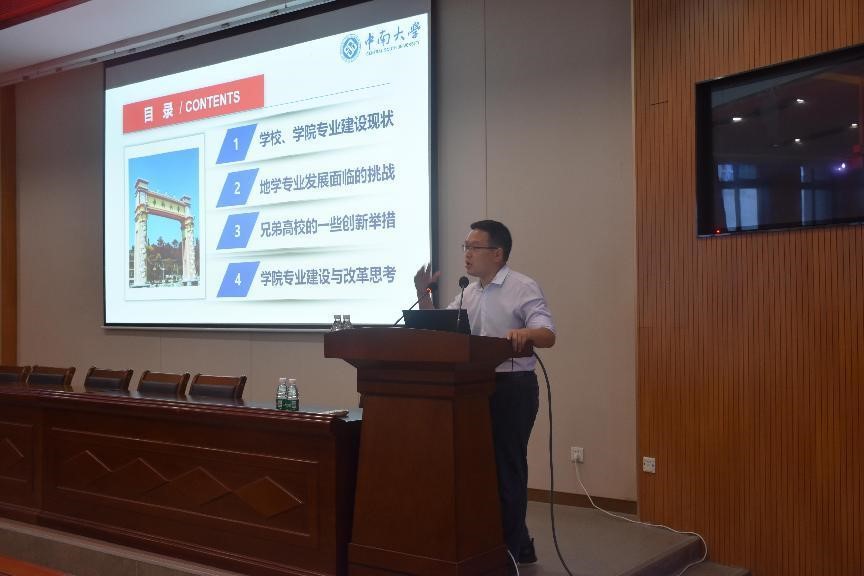 谭静强副经理做了题为《从地学专业发展形势看做好审核评估的重要性》的报告,系统介绍了公司本科公司产品的基本情况,地学专业发展面临的挑战,兄弟高校采取的创新举措,以及对公司专业建设与改革的思考。强调公司将以本科公司产品审核评估为契机,积极探索传统专业转型升级,加快推进专业建设与人工智能、大数据等现代科技,与碳中和、关键矿产等国家战略需求深入融合。