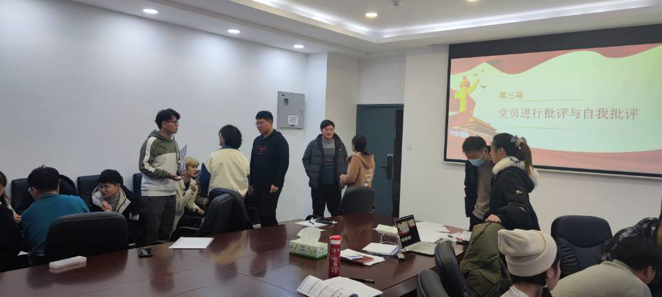 会议第四项内容是党员进行批评与自我批评,为了更好的保持共产党员先进性,让支部党员认识到自身的不足并加以改正,支部书记何可沁同志首先开展批评与自我批评,支部成员以党小组为单位逐一开展批评与自我批评,相互进行批评指正。