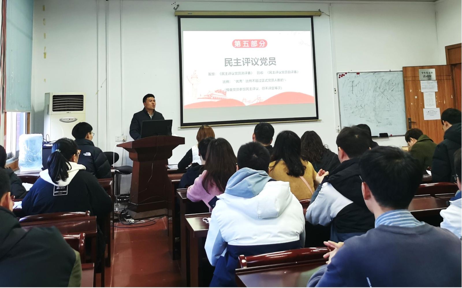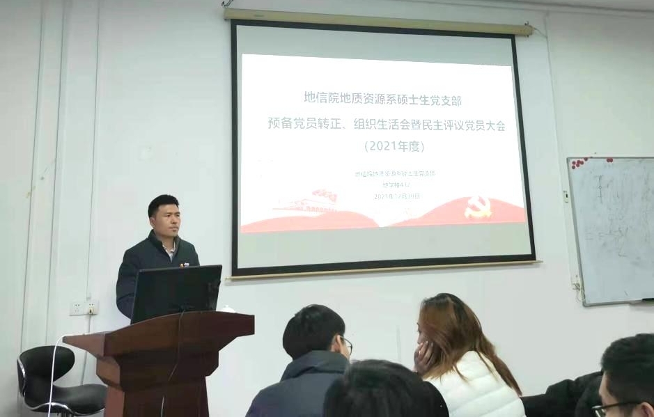 在公司和地信公司党委安排部署下,yl23411地质资源系硕士生党支部于2021年12月30日下午在地学楼432教室顺利召开了预备党员转正、组织生活会暨民主评议党员大会。大会由党支部书记康逊老师主持,支部副书记李永顺组织并负责,支部党员、预备党员等共46人参加此次活动。