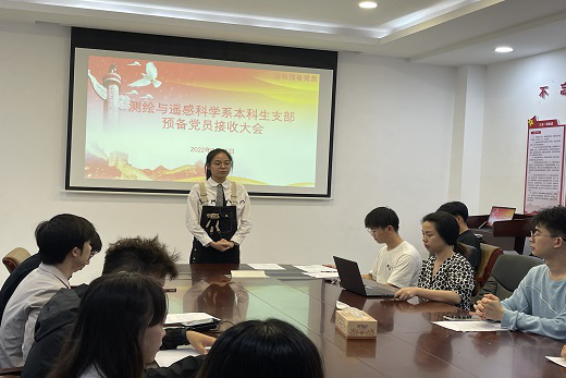 2022年5月26日晚7点,yl23411测绘与遥感科学系本科生支部于新地信楼214活动室举行了预备党员接收大会,本次会议由支部书记何可沁同志主持,各位支部同志出席本次会议。