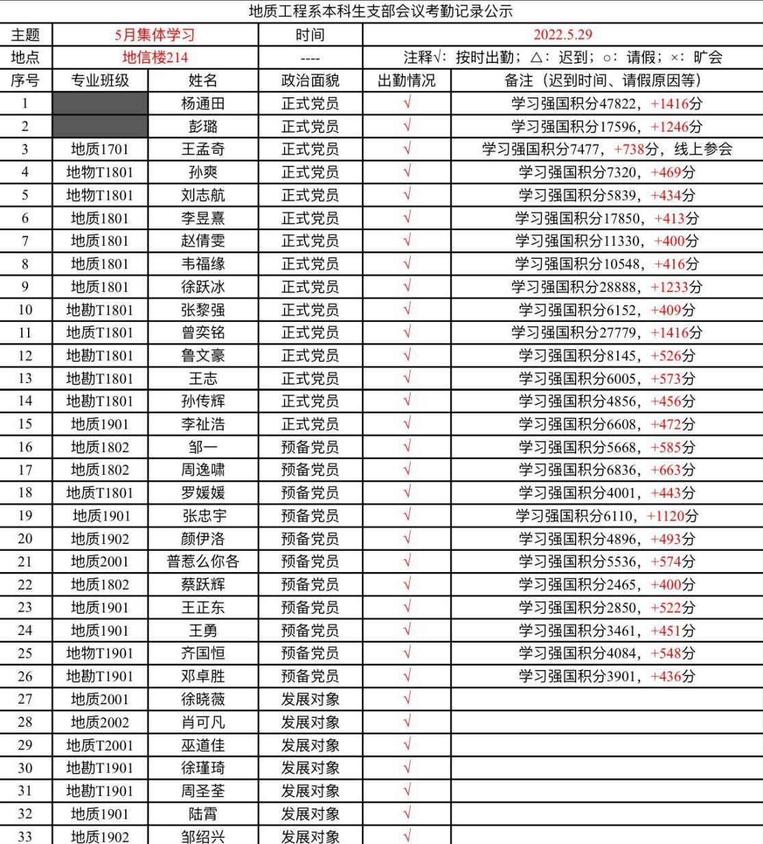 5月29日中午12:30,地质工程系本科生支部五月党日活动在地科楼214顺利召开,支部书记杨通田、支部全体同志参加本次支部大会。会议由第一党小组组长邓卓胜同志主持。
