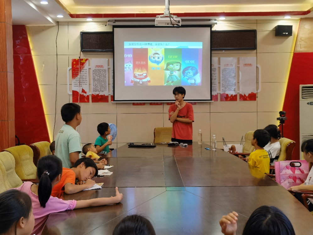 为了让孩子们了解更多的心理健康知识,实践队设计了一系列活动:破冰游戏、团辅游戏、上心理辅导课等。全体成员均全身心的参与到团辅游戏与破冰游戏中,与孩子们一起游戏,真正实现以真心换真心,和孩子们拉近了距离。同时由吴跃达和沙荣丽两位成员为孩子们带去了两节心理健康知识课程,两节课中所有同学都积极配合课程,相信同学们在课程中都有所收获,掌握了更多的心理健康知识,也希望他们能够在今后的学习生活中更加快乐阳光的的成长。