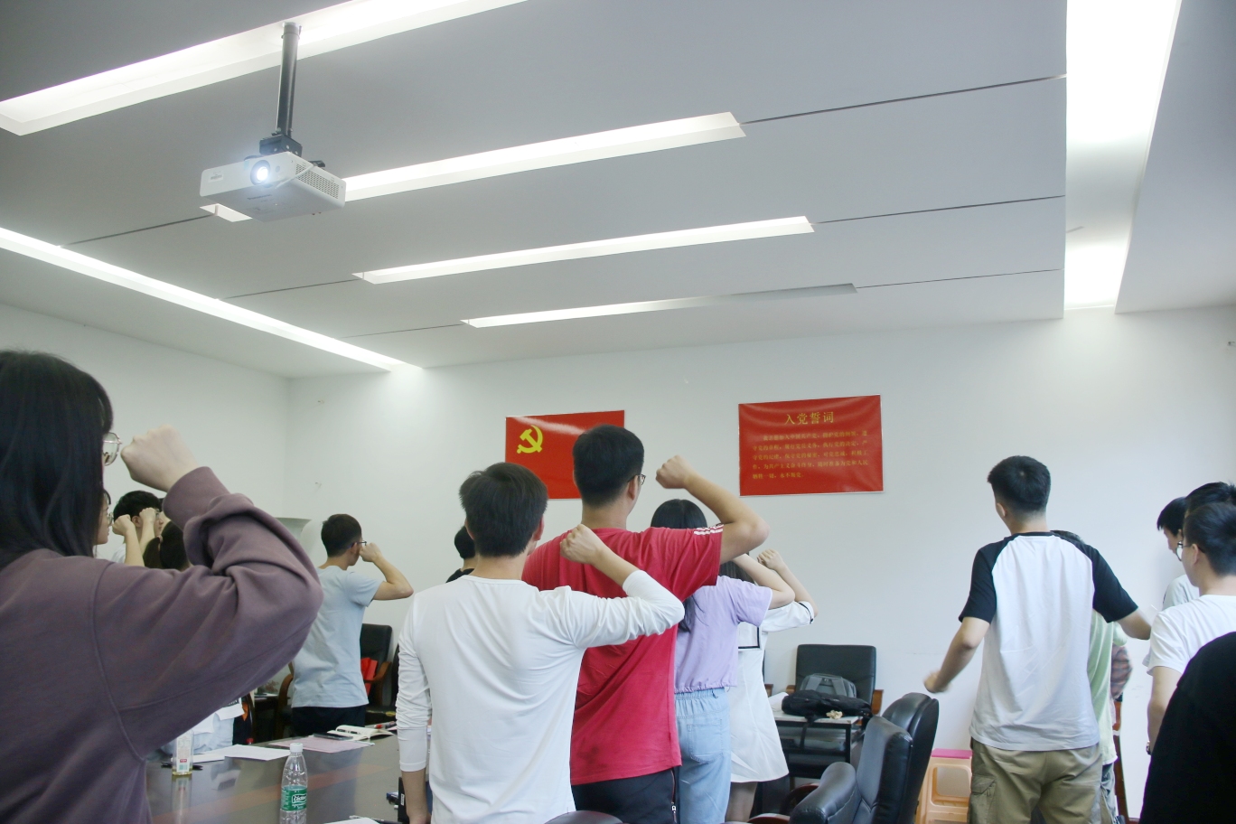 会议最后一项,覃毅学同志带领全体与会党员向党旗宣誓,重温入党誓词。最后,在国际歌的歌声中,yl23411地质资源系本科生支部2021届毕业生党员欢送会落下帷幕。