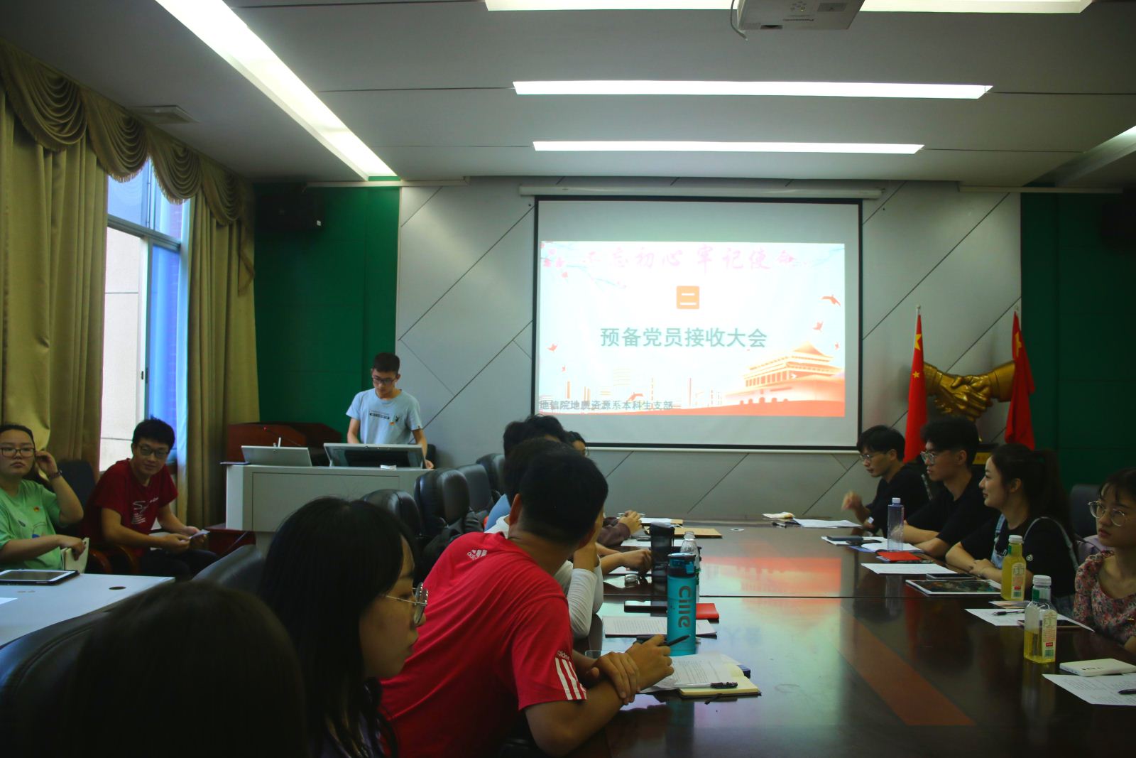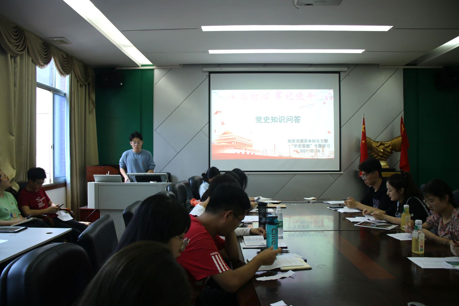 5月26日上午12:00,地质资源系本科生支部预备党员接收大会暨“学史崇德”专题党课于地学楼336举行,地信公司党委副书记李建军、支部全体成员及本次拟接收发展对象参加本次大会,会议由朱恒睿同志和李世相同志主持。