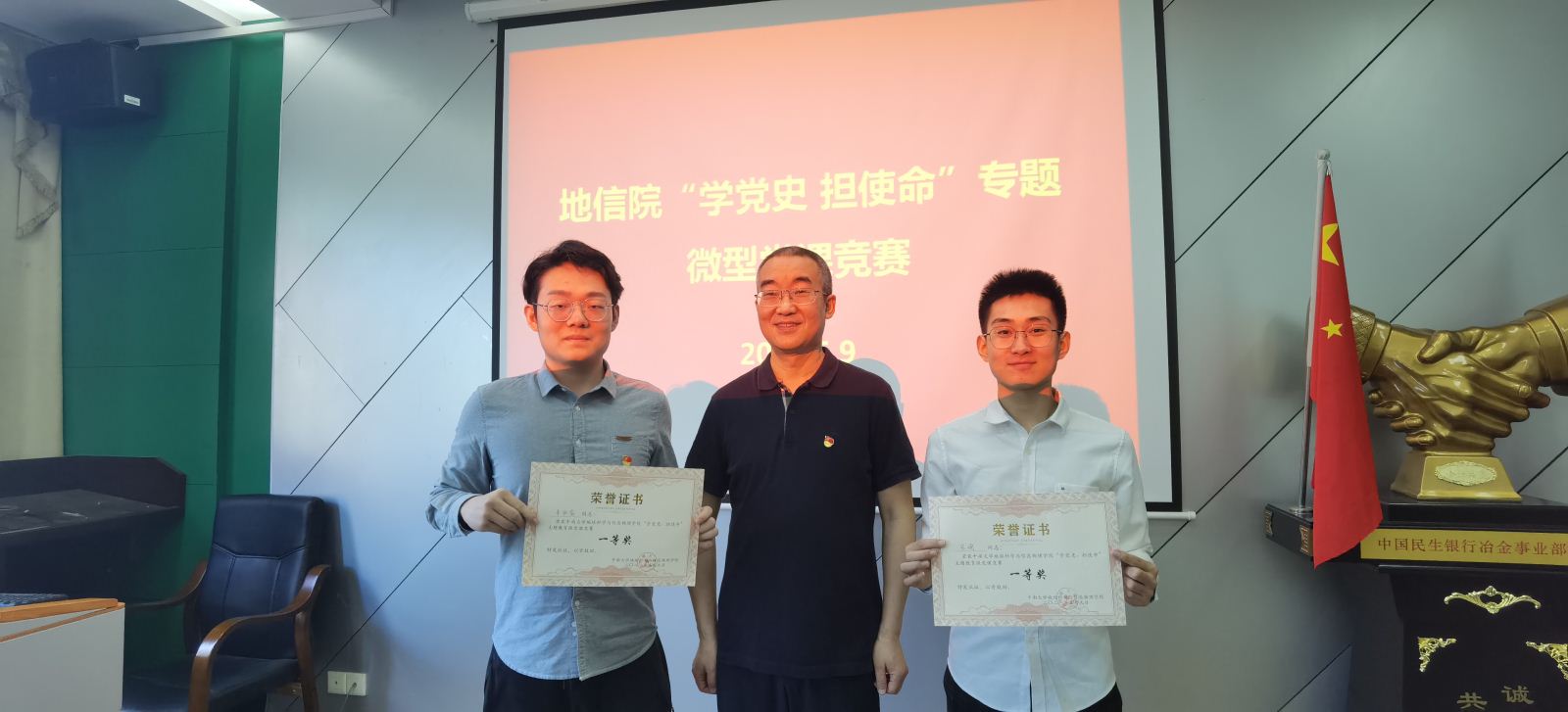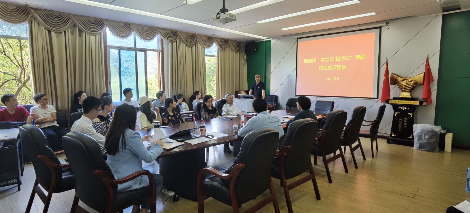 为深入学习贯彻习近平新时代中国特色社会主义思想,巩固深化“不忘初心、牢记使命”主题教育成果,扎实开展党史学习教育,以优异成绩迎接建党一百周年。根据《yl23411开展党史学习教育的实施方案》相关安排,地信公司党委针对全院公司教工、员工党支部,于5月9日上午在校本部地学楼开展了“学党史 担使命”理论宣讲专题微型党课竞赛(决赛)活动。出席本次竞赛活动的有公司党委书记邵拥军、公司党委副书记兼关工委主任李建军、院关工委常务副主任胡祥昭、院关工委委员匡华凌、院研究生辅导员田可、院地质工程系硕士生支部书记刘飚、院团委书记刘琦。竞赛由地质资源系本科生党支部杨晨雨主持,来自公司各个党支部的党员代表现场观赛。