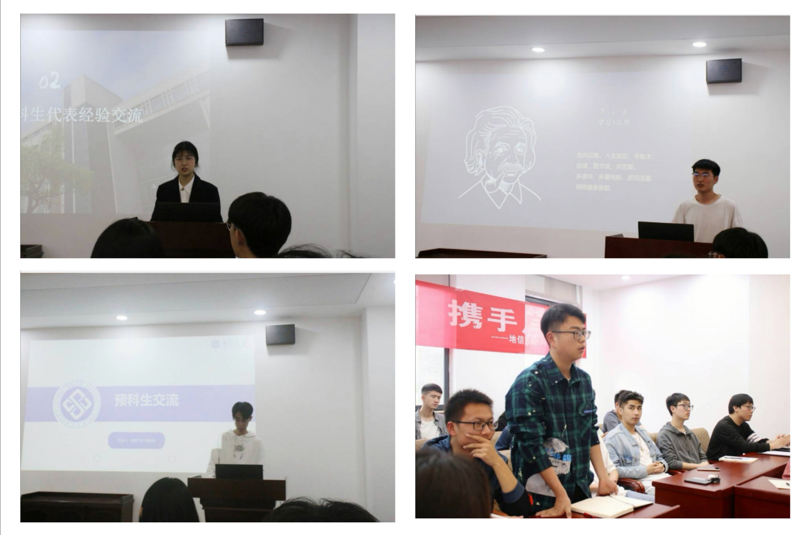 会议伊始,胡幽老师从公司团队力量、学科特色与方向等方面对公司及公司进行了详细地介绍。随后由各专业优秀预科生代表进行经验交流,首先由测绘1903班刘洢璇同学进行经验分享,刘洢璇同学从心理路程、学习情况、校园生活三方面分享了她的预科情况。刘洢璇谈及从预科到本科的转变,应从心态接受自己、了解自己、行动严格要求自己三方面进行。接着地质1901班李祉浩同学从介绍地质专业及预科本科的区别两方面进行分享,他向大家展示了地质专业未来的就业情况,并建议同学们积极参加员工工作、平衡好工作与学习。最后由资勘2009班王泽立同学进行经验分享,他则从个人经历和大学建议两方面阐述,分别就学习、工作和生活提出自己建议。