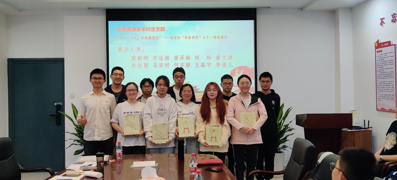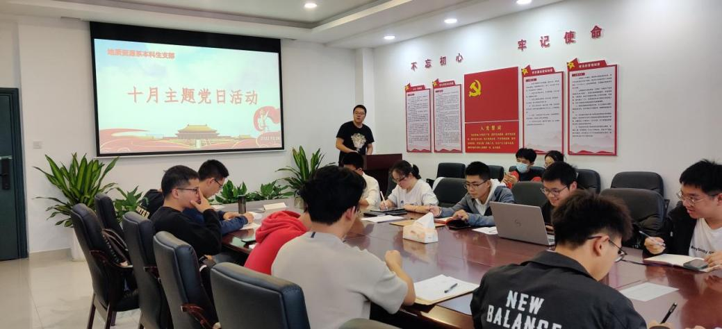 2022年10月26日下午,地质资源系本科生支部在新校区地科楼214活动室开展了10月份主题党日活动暨“学习二十大,永远跟党走”——yl23411“青春向党‘七个一’”党支部风采展示活动。会议由常栩宁同志主持,支部全体党员同志、发展对象和部分入党积极分子参加本次会议。