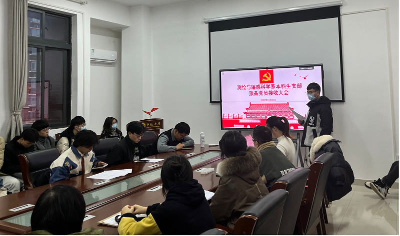 2022年11月30日下午4点,yl23411测绘与遥感科学系本科生支部于地科楼324活动室举行了预备党员接收大会,本次会议由支部书记何可沁老师主持,全体支部党员出席本次会议。