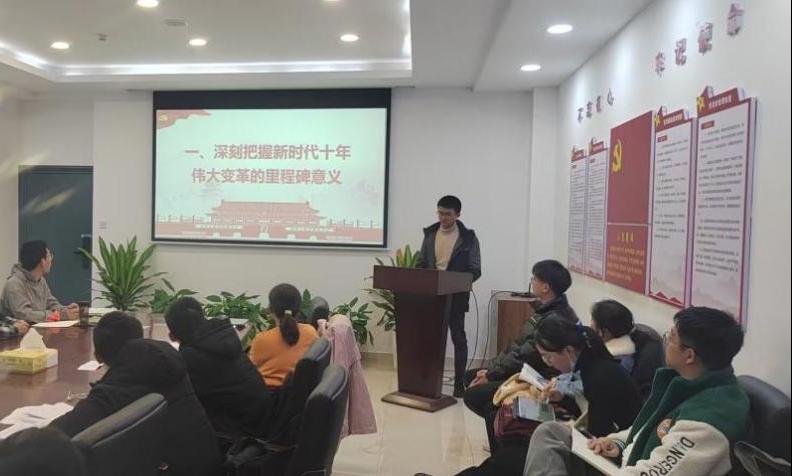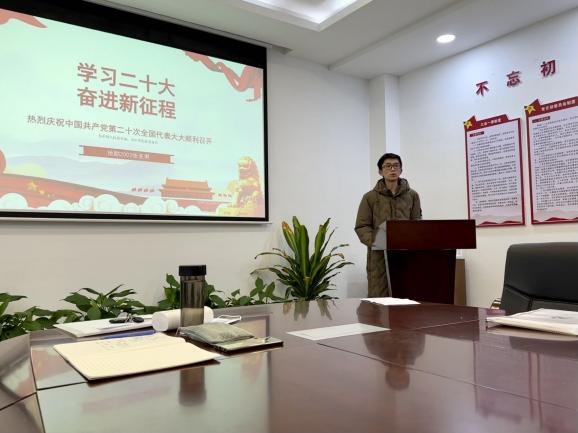 会议第四项,地质资源系本科生支部书记杨晨雨同志为支部成员开展党的二十大精神学习分享。