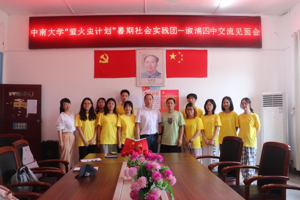 (yl23411“萤火虫”计划实践团成员与溆浦四中李董事长、黄董事长合影)