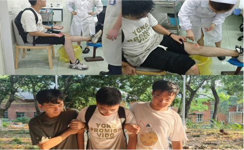 在本部校医院,医务工作人员对该学弟进行了及时的伤口处理,使他得到了必要的医疗救治。完成治疗后,王老师与支部的两位同志一起将受伤同学安全地送回宿舍。
