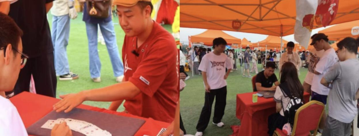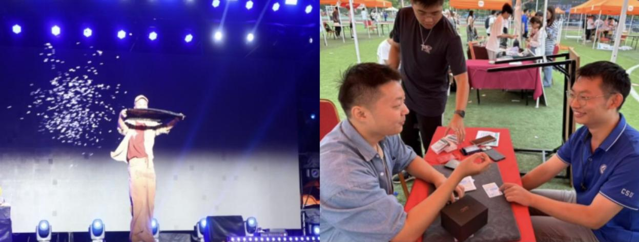 在百团大战中,魔术社的摊位吸引了许多满怀好奇的同学。社员们熟练地展示着各种精彩的魔术,从神奇的纸牌魔术到令人惊叹的近景魔术,每一个表演都吸引着大家的目光。他们还耐心地为同学们讲解魔术背后的原理,让大家在感受魔术神奇的同时,也能了解到一些科学知识。