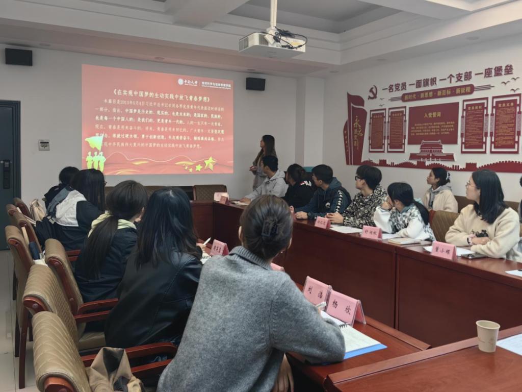本次学习旨在深入学习习近平总书记《论教育》主要篇目和全国教育大会精神,激励新时代青年在生动实践中放飞青春梦想。学习过程中,尹语妍同学从与青年相关的篇目展开介绍,从习近平总书记在全国教育大会上的讲话到青年应当努力成为堪当强国建设、民族复兴大任的栋梁之才,走好人才自主培养之路,激励同学们争做有理想、敢担当、能吃苦、肯奋斗的新时代好青年,为实现中华民族伟大复兴的中国梦接续奋斗。