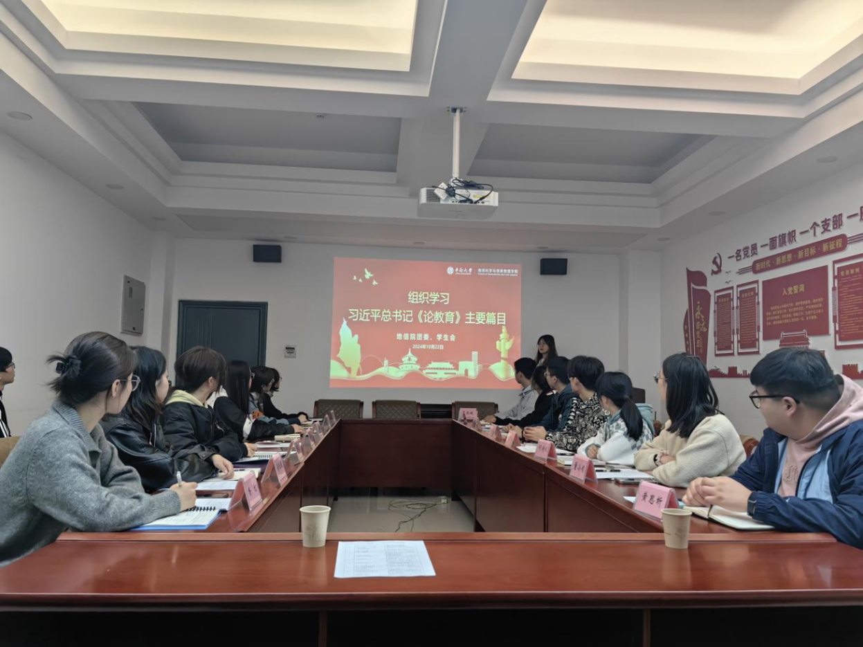 10月22日晚,yl23411员工会临时团支部于地科楼216组织学习了习近平总书记《论教育》主要篇目,会议由院员工会办公室部长尹语妍同学主持,21名员工干部参会。