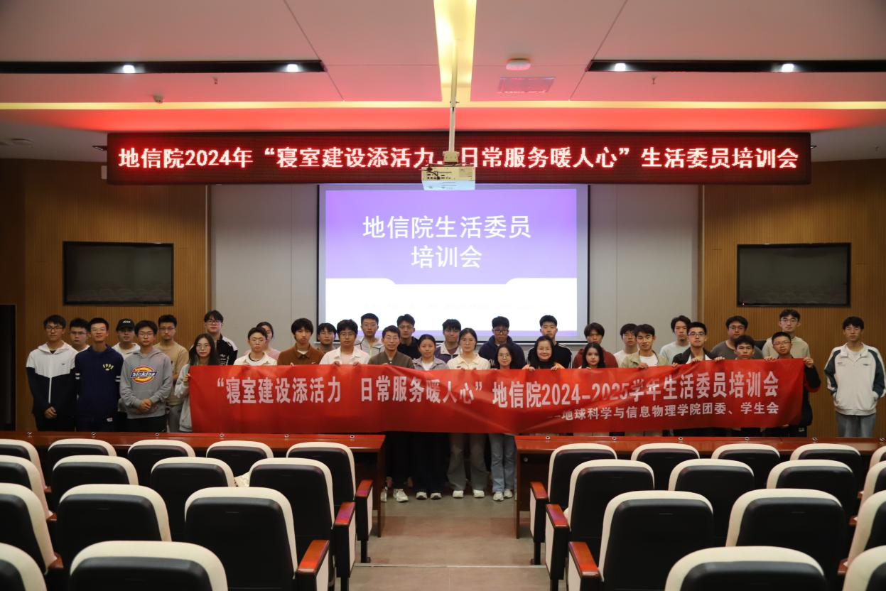本次培训会以“寝室建设添活力,日常服务暖人心”为主题,主要围绕三个方面展开:生活委员的主要职责、生活委员及班级考核标准以及寝室文化节活动介绍。会议提出生活委员要明确自己的职责、完善班级生活管理制度和班费管理制度,并详细讲述了地信团青春信箱——“留音石”投稿工作。此外,牟垚同学还介绍了寝室文化节活动的大致流程和相关要求,鼓励生活委员们积极带领班级同学参与公司活动。会议结束后,全体参会人员合影留念。