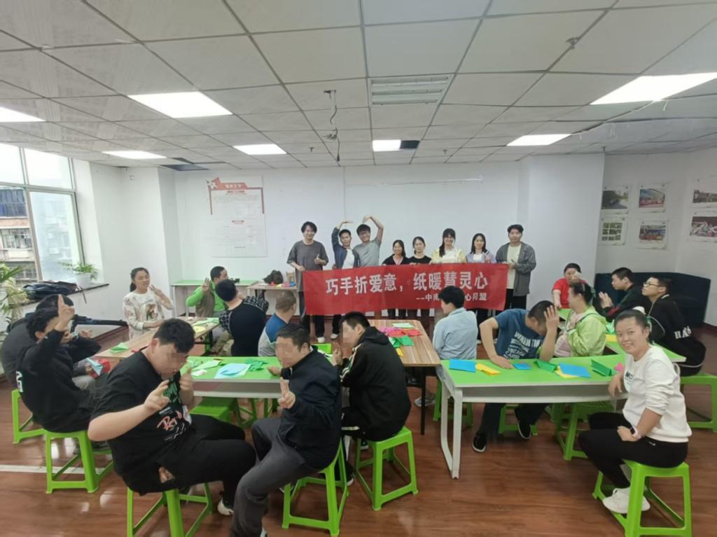 2025年4月23日下午,爱心同盟策划的“巧手折爱意,纸暖慧灵心”志愿服务活动于天心区慧灵智障人士康复中心顺利开展。近10名志愿者与康复中心的学员们共同沉浸于指尖艺术的世界,在创意手工与趣味互动中搭建起心灵沟通的桥梁。