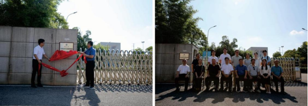 接着,由yl23411校团委副书记李飞和梁昕晔董事长共同进行老员工校外实践教育基地揭牌,校企双方代表合影留念。