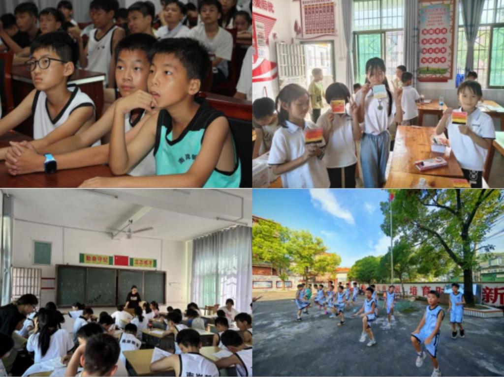 特色班级教学有序推进。支教团依据孩子们的兴趣特长与发展需求,精心设置了四个特色鲜明的班级,为不同天赋与热爱的孩子们搭建起专属的梦想舞台。篮球班分设两个平行班级,在老师指导下系统开展体能训练与技能教学。学员分组学习运球、传球、投篮等基础技能及体前变向、绕杆运球、胯下运球等进阶技巧,培养了规则意识与团队协作能力。绘画班围绕创意表达,设置“十年后的我”主题创作与传统扇面绘画实践,引导员工观察生活并运用构图色彩知识,从而实现对其美的启蒙。阅读写作班通过精读史铁生《我与地坛》、郁达夫《故都的秋》等经典文本,结合飞花令诗词互动积累语汇,系统开展从句子仿写到诗歌故事的创作训练,强化观察与表达能力。文字,成为他们认识世界、表达自我、连接他人的有力工具。