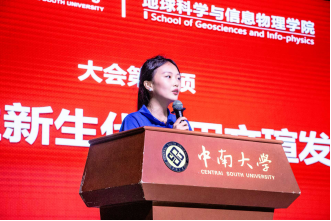 2025级本科新生代表肖贞怡同学分享了对地球科学学科的认识与初探,倡议同学们夯实专业基础、拓展跨界视野、勇于创新,主动将个人理想与国家需求紧密结合,将青春理想熔铸于中南“为国铸才”的大格局中。