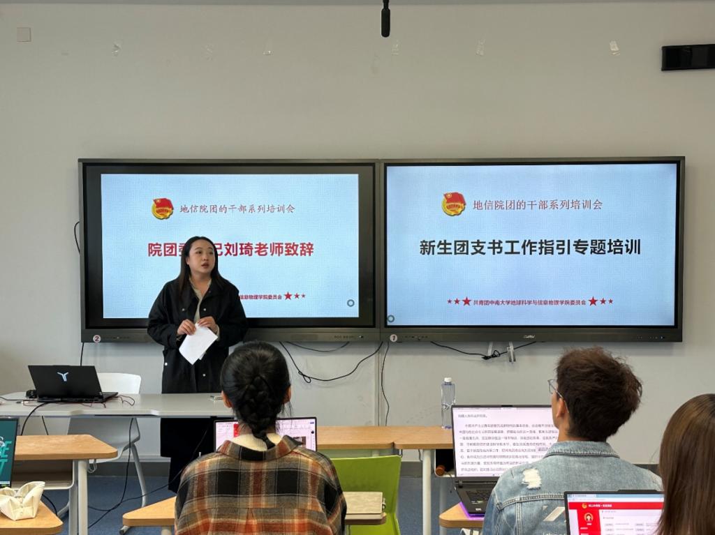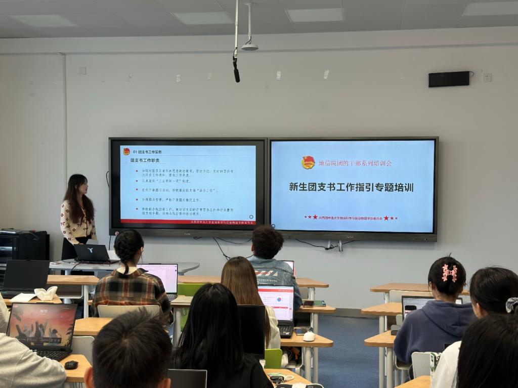 会议伊始,刘琦老师围绕团支书的角色定位与责任使命展开讲解与指导。刘老师指出团支书是团支部的核心力量,要充分发挥引领作用、勇于创新、团结凝聚团支部成员,并勉励全体团支书以高度的责任感和使命感,将工作做实做细。刘琦老师的讲话为新生团支书的后续工作指明了方向,也让他们深刻认识到自身肩负的责任。