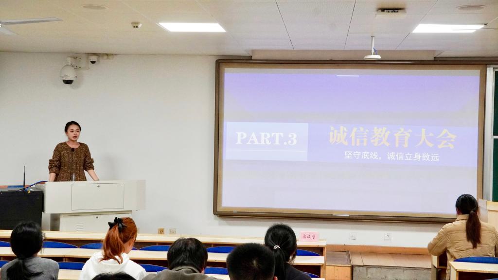随后,寇浚哲老师围绕诚信应考教育与日常管理细则做了介绍补充。寇老师结合公司员工纪律处分条例和真实案例,提醒同学们务必诚信应考,以真实水平检验学习成果。在日常事务管理方面,寇老师对课程和外出请假的规范流程及晚报平安和晚熄灯管理要求进行了重点解读。